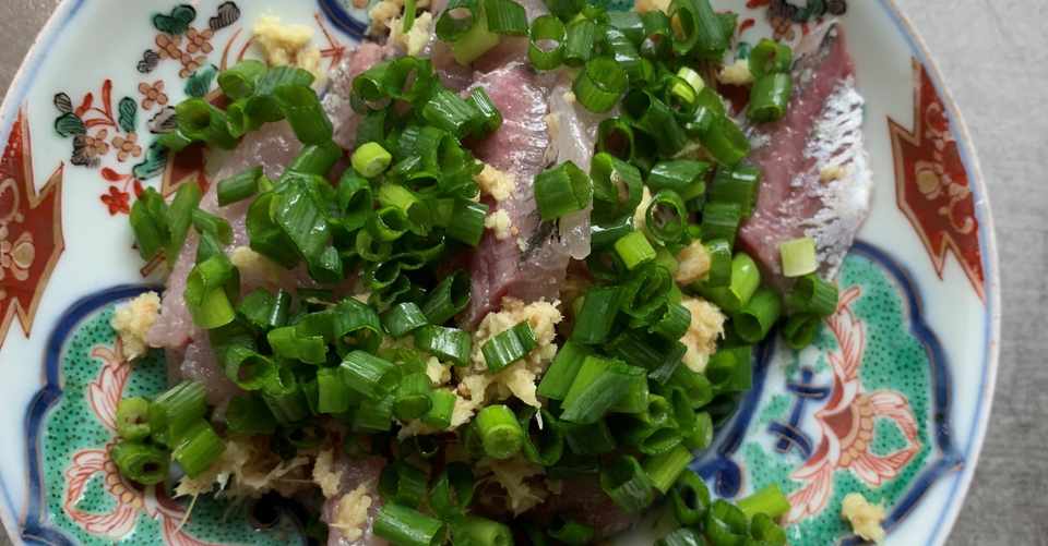 豆アジの刺身にネギと生姜をたっぷり混ぜ 醤油をひとまわしして食べる かないわレシピ Note