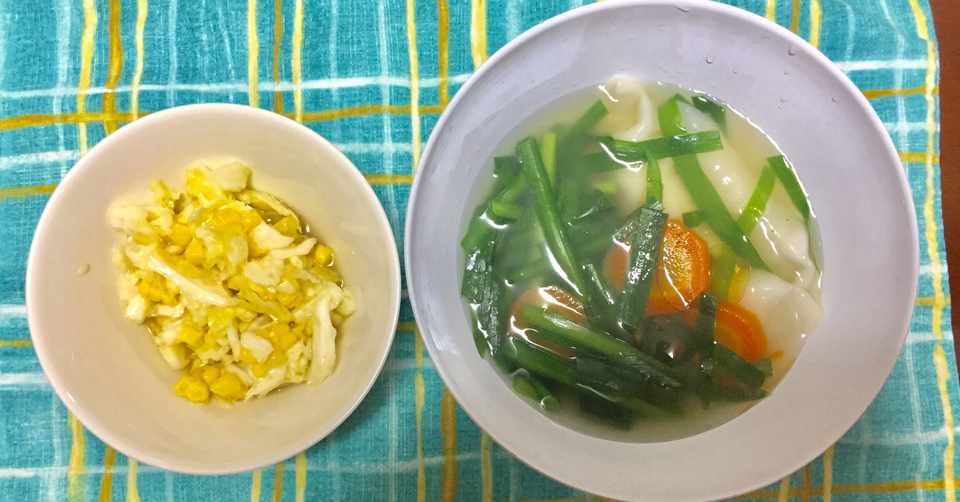 子供クッキング 子供家計簿1日目 水餃子のスープとフレッシュコーンのコールスロー Rin Note